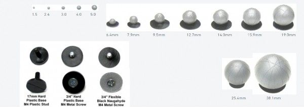 Reflective markers are made with machined hemispheres and a center threaded cylinder resulting in greater spherical accuracy